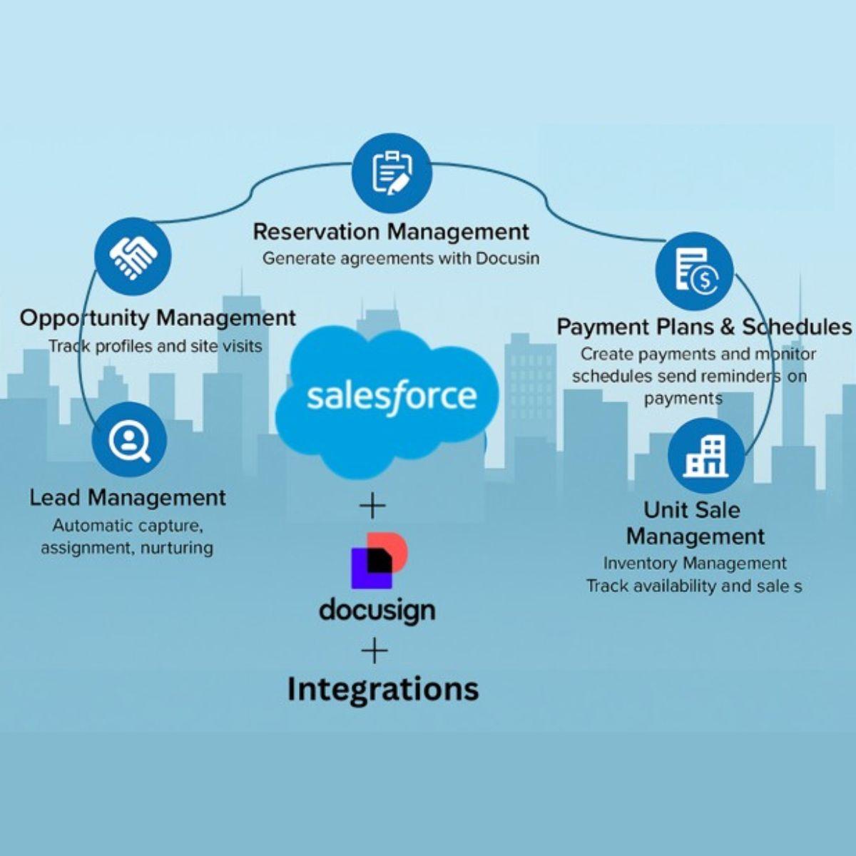 Manage leads, bookings, and contracts in Salesforce, tailored for property sales, leasing, and renewals.